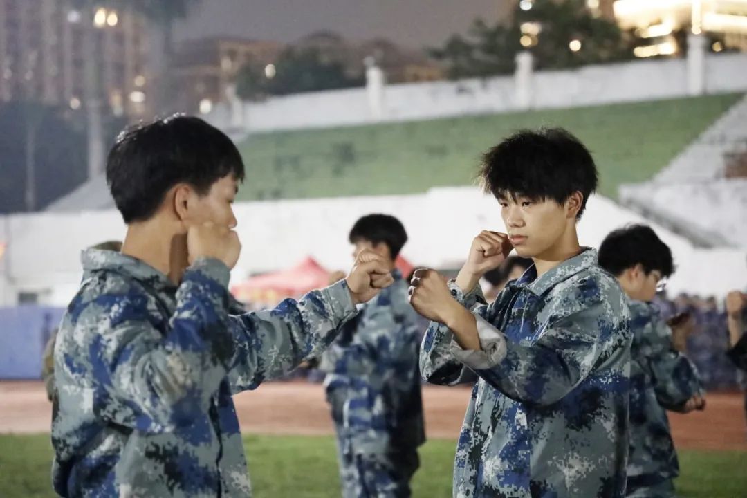 军体拳,以其刚劲有力的动作和实战性强的特点,成为军训中的一项重要训练内容。练习开始,教官逐一讲解军体拳的基本动作和要领,从拳法、腿法到身法、步法,每一个细节都力求精准到位。在教官的示范下,同学们开始模仿练习。他们或出拳如风,拳风呼啸;或踢腿如鞭,势大力沉。汗水沿着脸颊滑落,浸湿了衣襟,但同学们的眼神中却透露出坚定与执着。