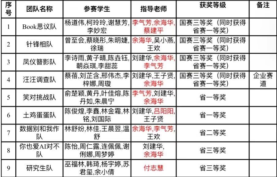 教师参与指导的队伍共9支进入省赛,最终获国家三等奖(同时获得省赛一等奖)4项,省级一等奖2项、二等奖1项、三等奖2项。