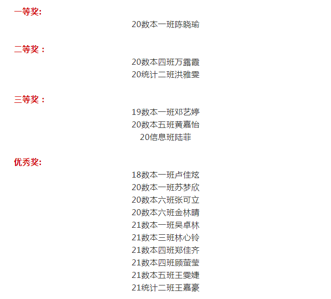 学院对同学们提交的作品进行精心挑选,最终确定如下获奖名单,让我们一起恭喜他们吧!