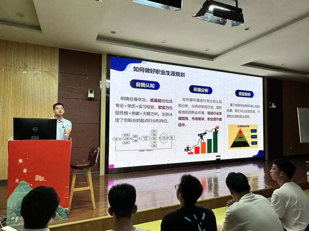 开展新生职业生涯规划讲座。辅导员李伟俊老师通过生动的案例和具体的数据,向新生们展示了不同职业选择的前景和挑战,鼓励新生们要积极培养自己的兴趣爱好,充分发挥优势特长,结合专业认知,制定个性化的职业生涯规划,更好地实现人生价值。