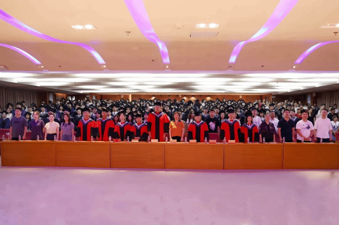 2024届学生毕业典礼暨毕业晚会正式开始。随后,全体师生起立,庄严地奏唱国歌。