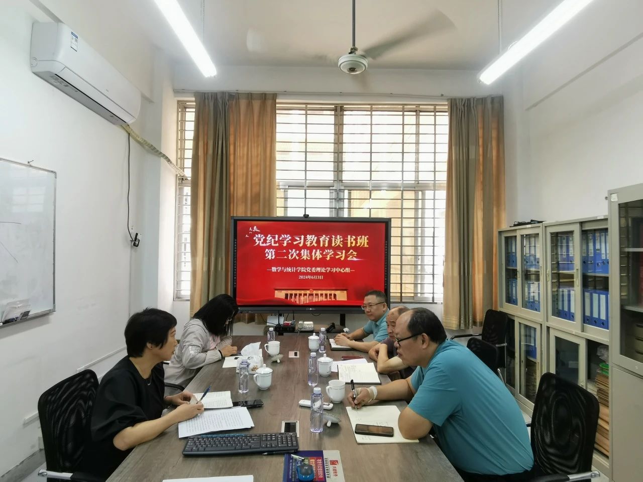 领导班子党纪学习教育读书班暨党委理论学习中心组在砺志123会议室举行第二次集体学习会,院党委班子成员参会。会议由学院党委书记陈晶莹主持。